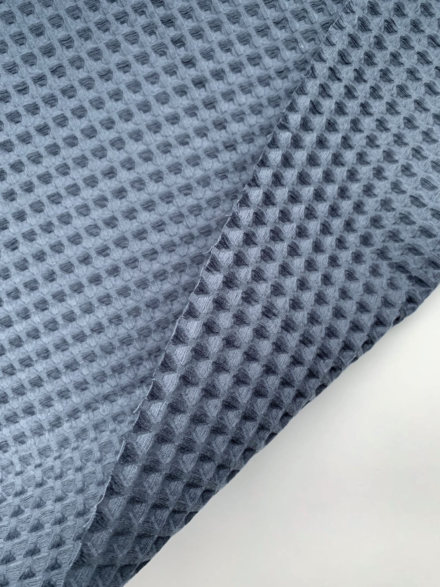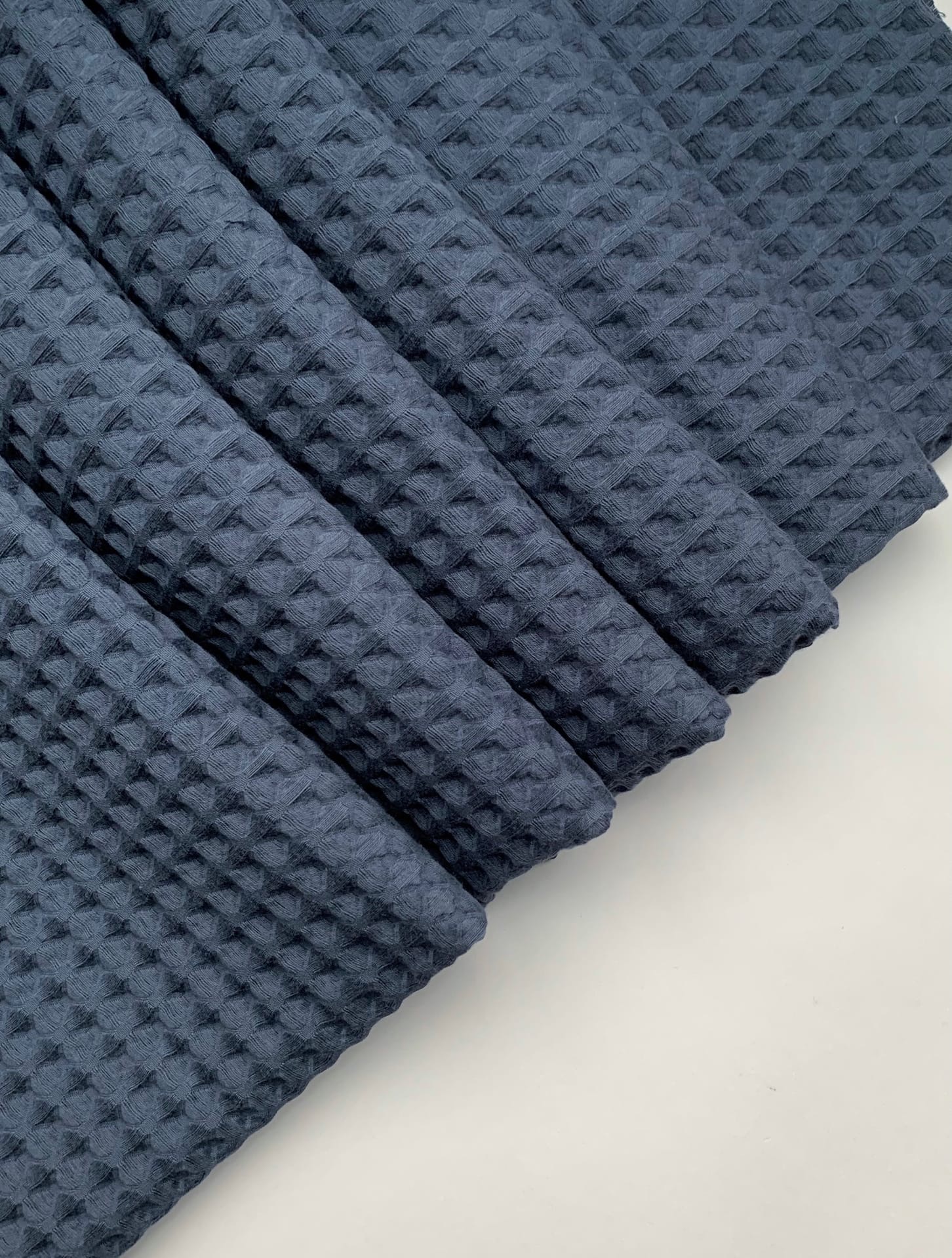 Ткань вафля хлопок "синий темный" арт.982 клетка 12*12мм