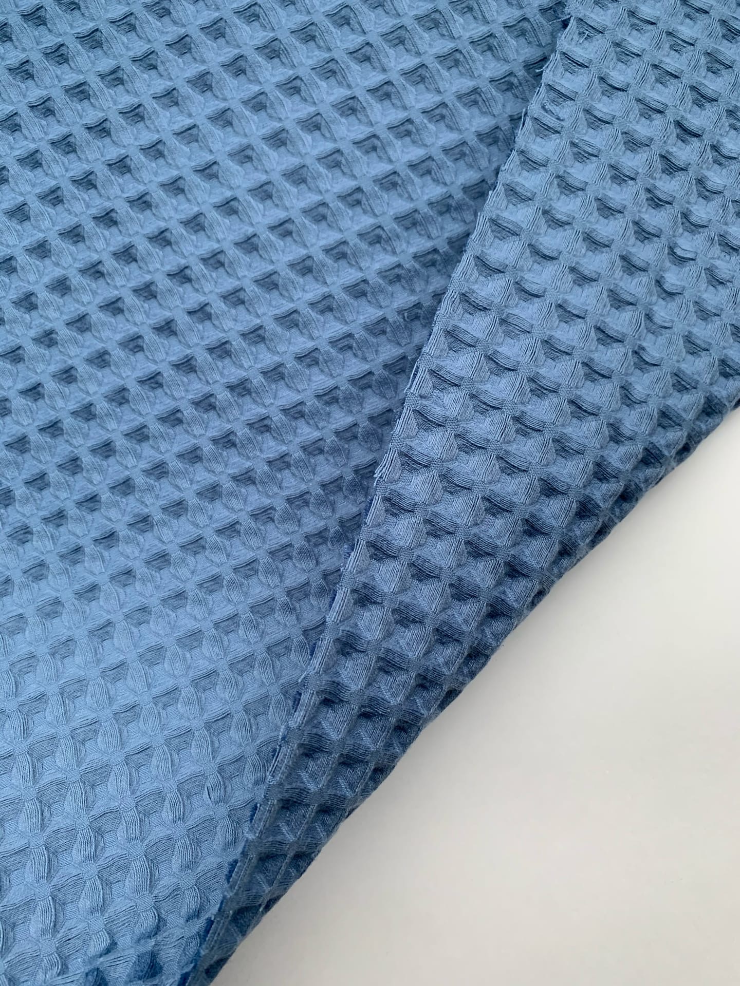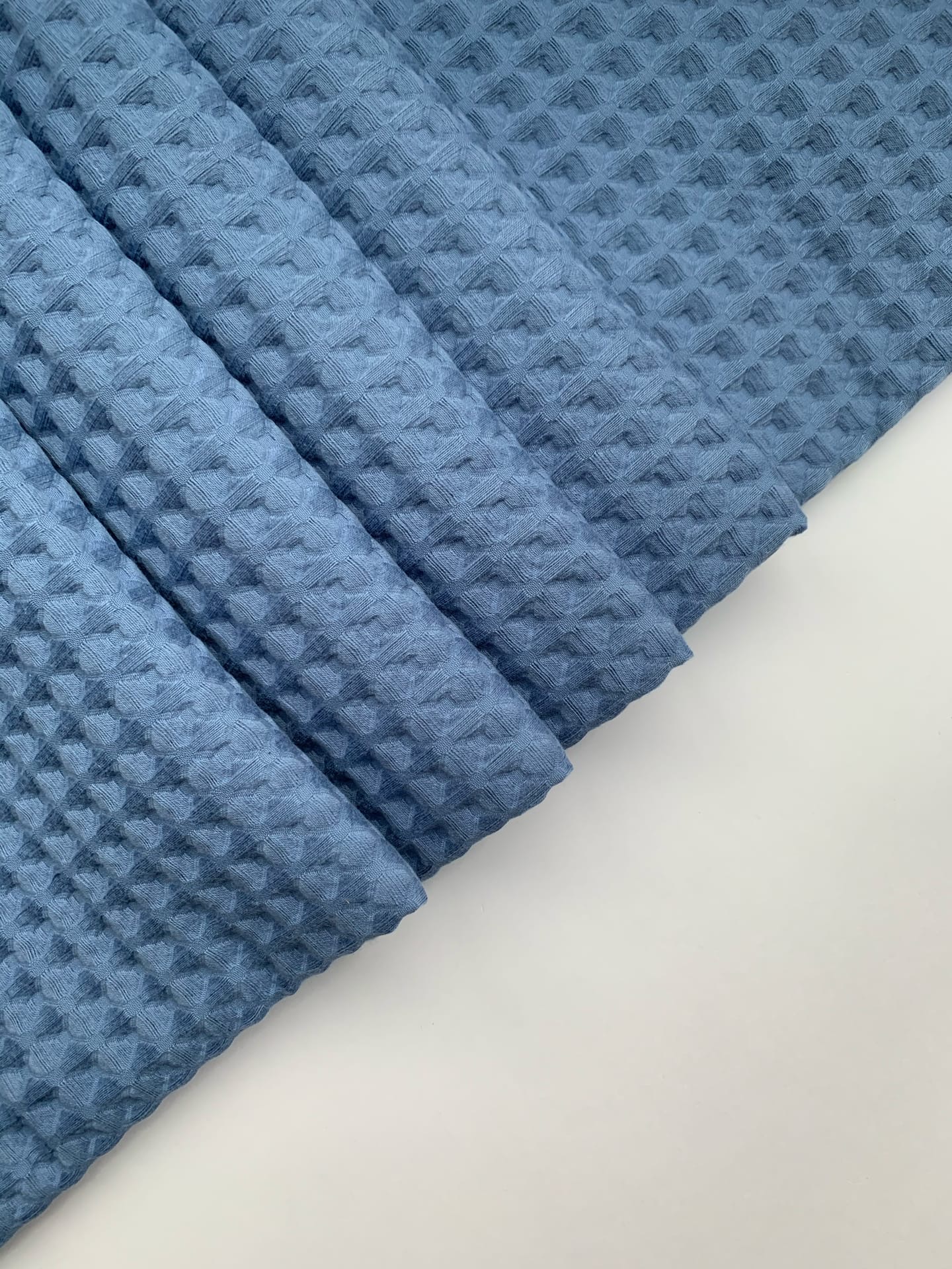 Ткань вафля хлопок "синий светлый" арт.503 клетка 12*12мм