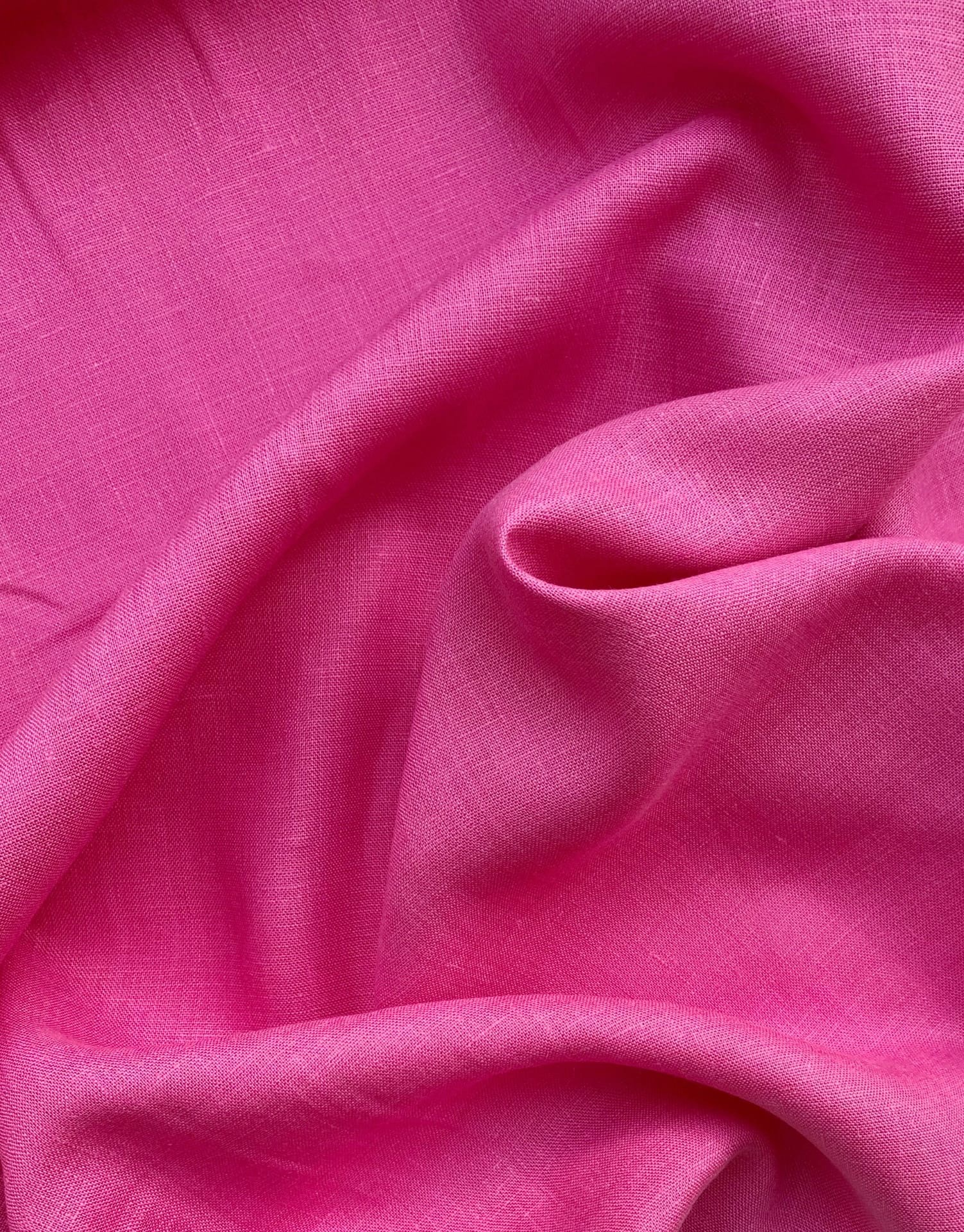 Ткань лён с легким эффетом мятости "розовый барби" арт.129