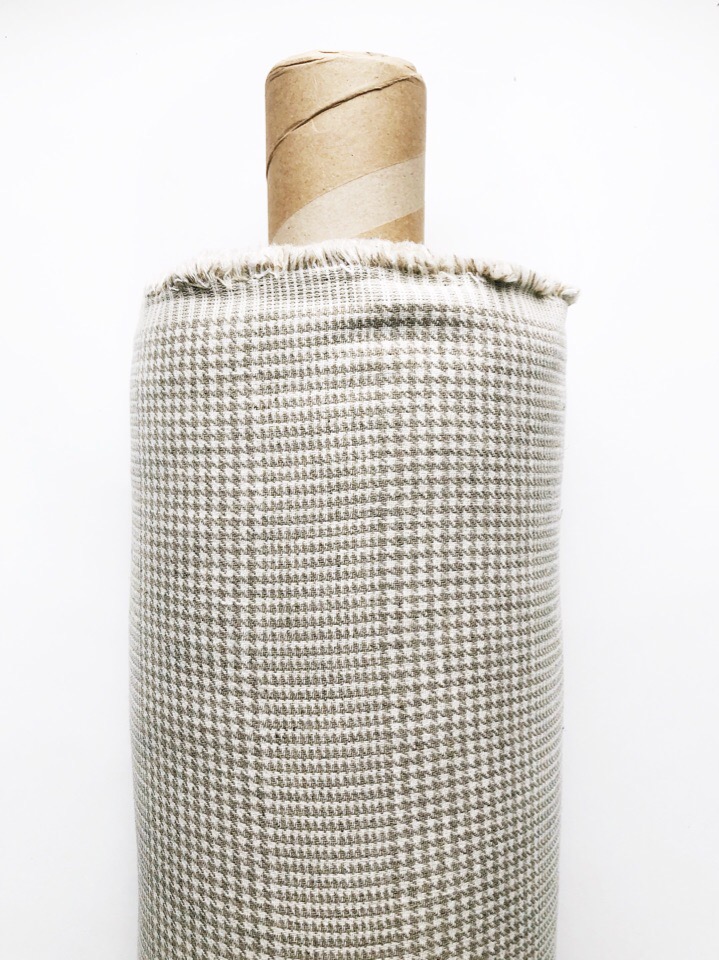 2063. Ткань лён умягченный "гусиная лапка (полосы) бежевая" костюмный
