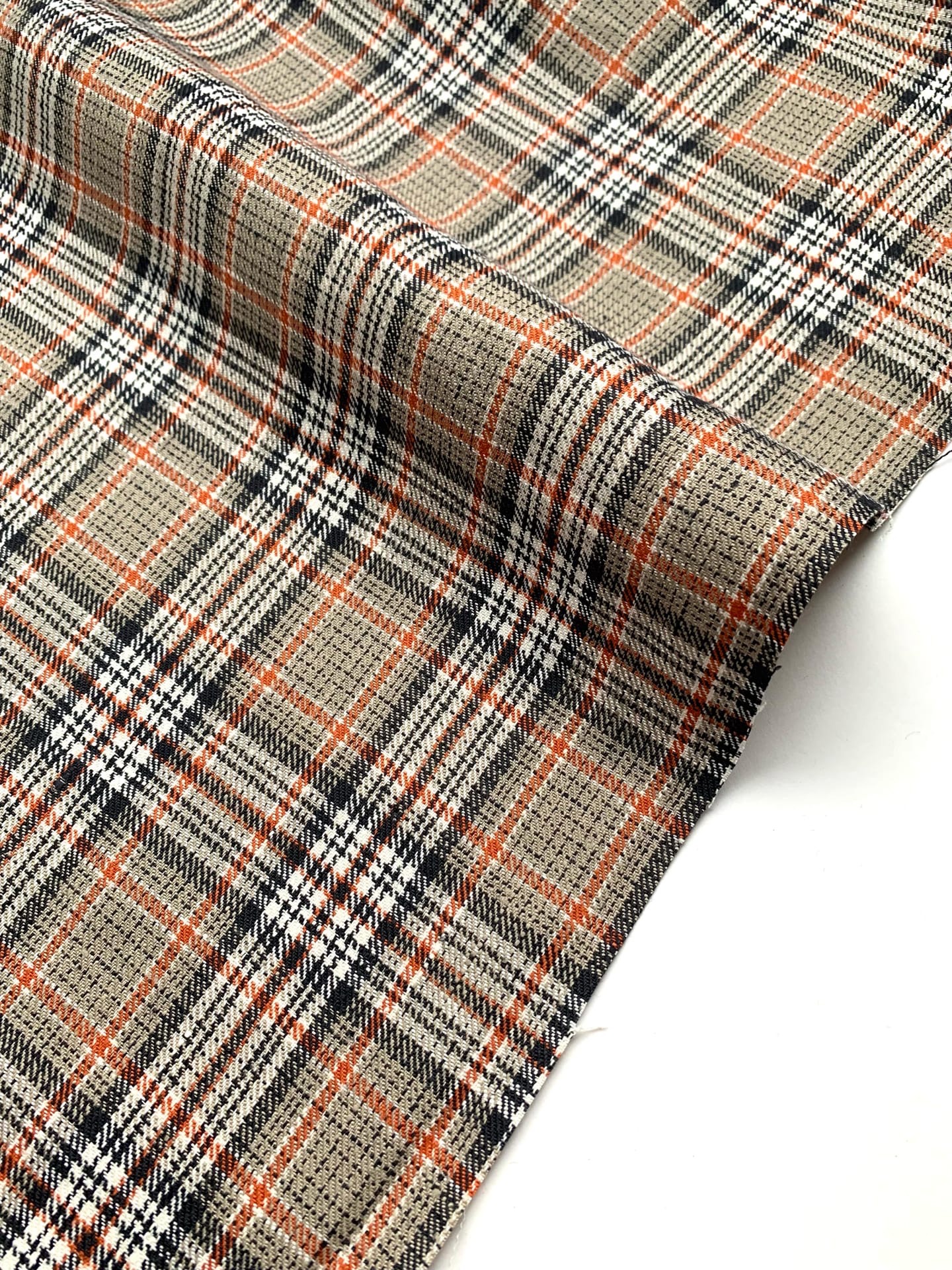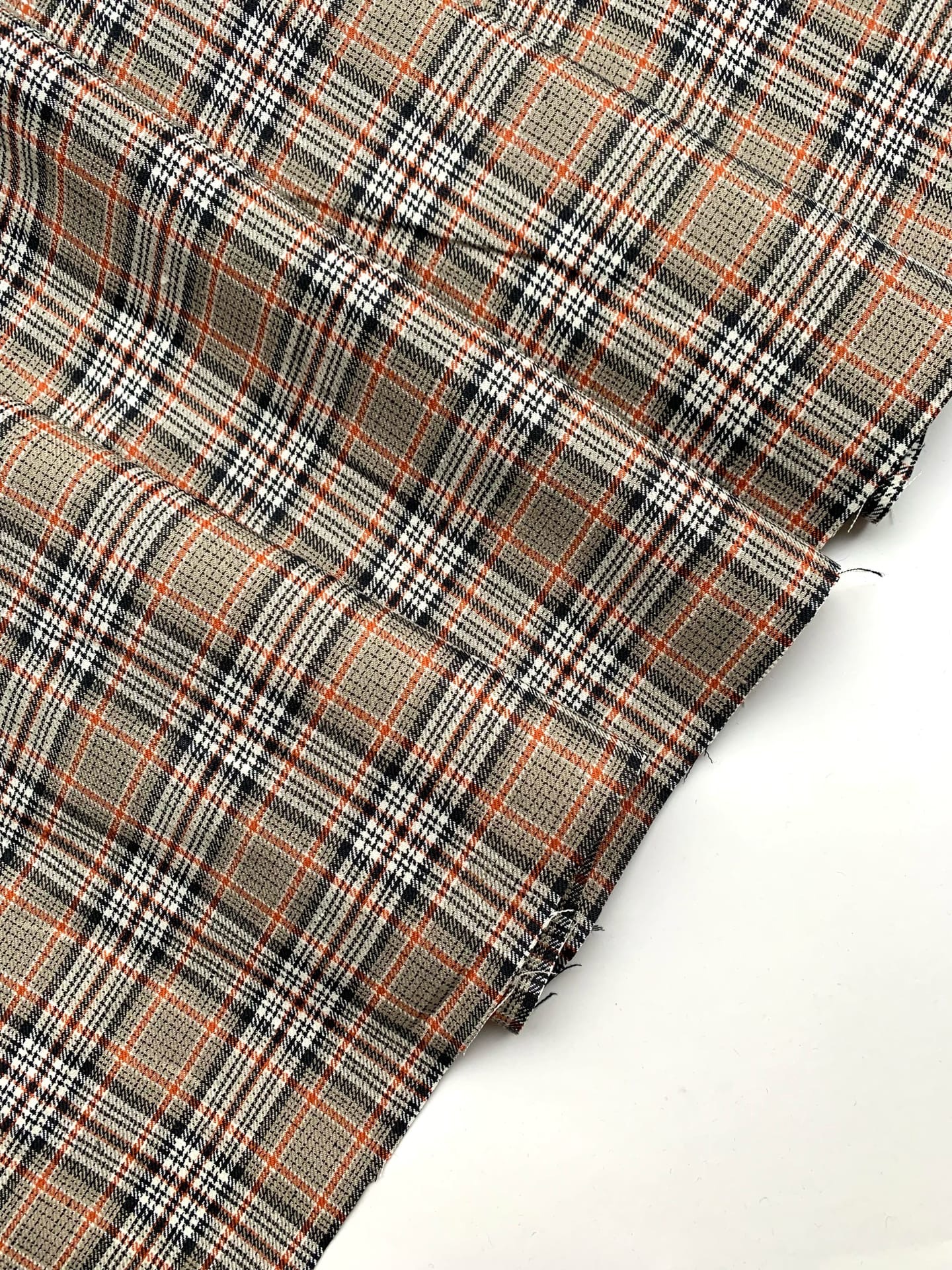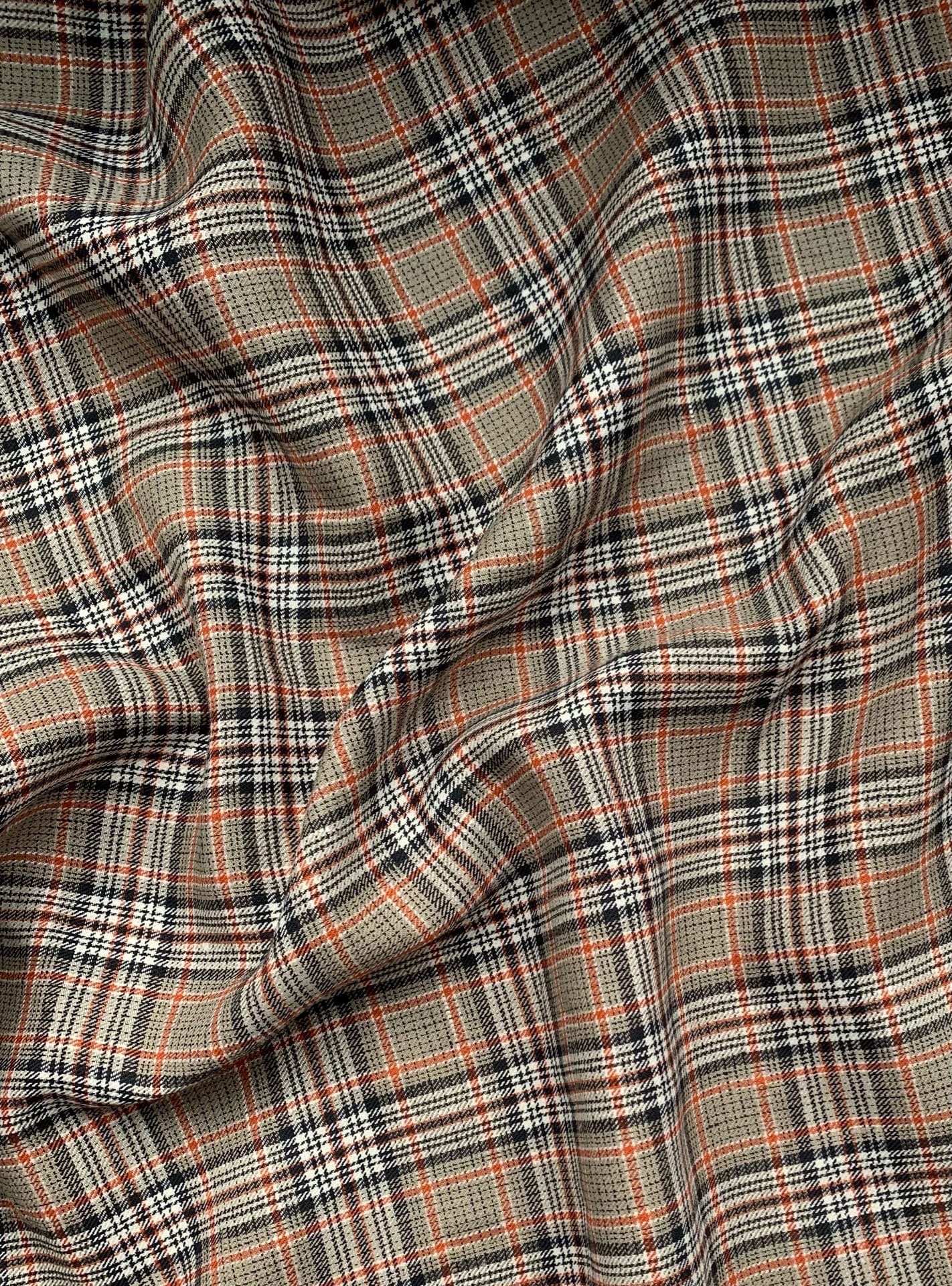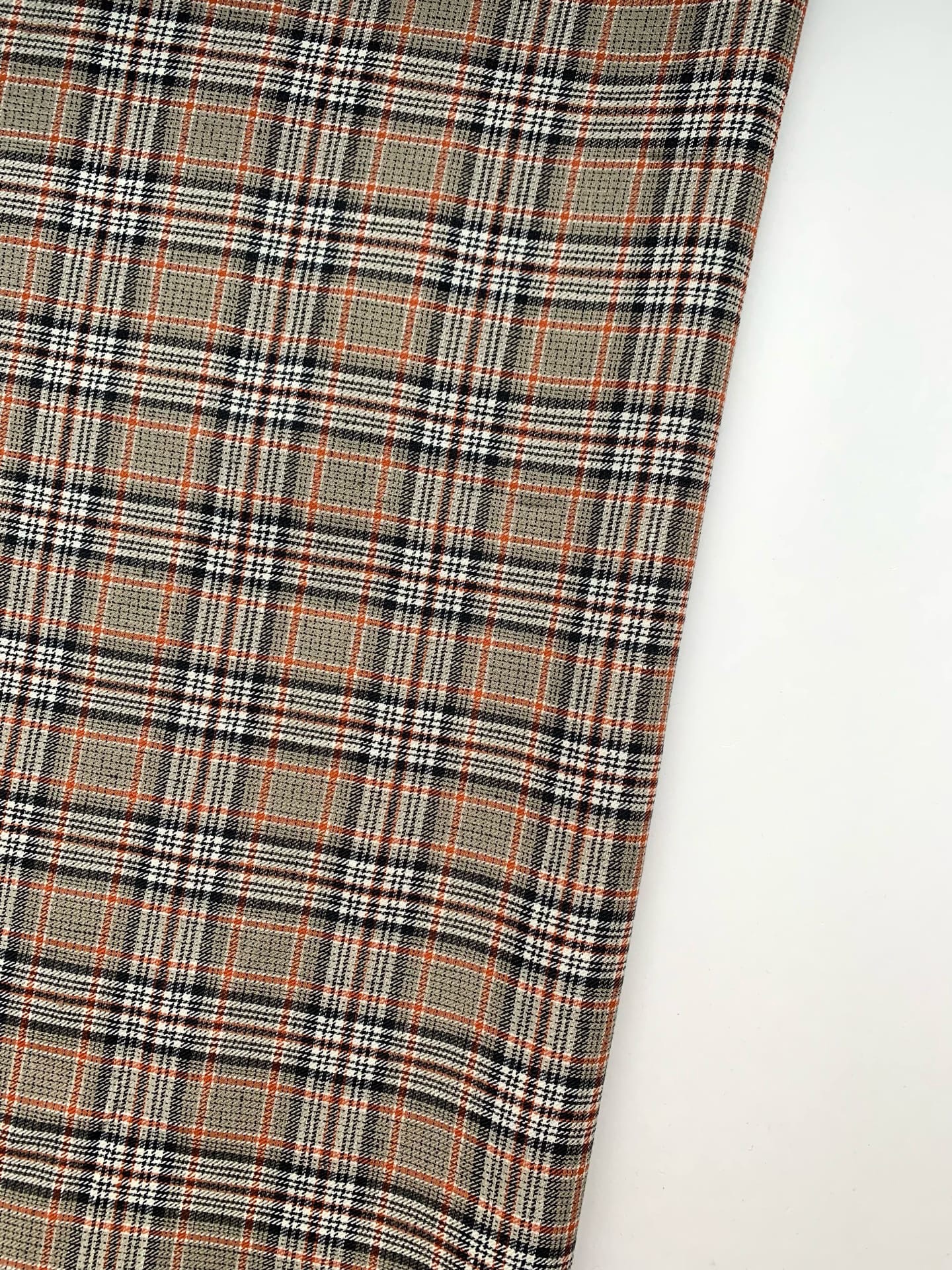 Ткань лён умягченный "бежево-оранжевая клетка" костюмный арт.187/210
