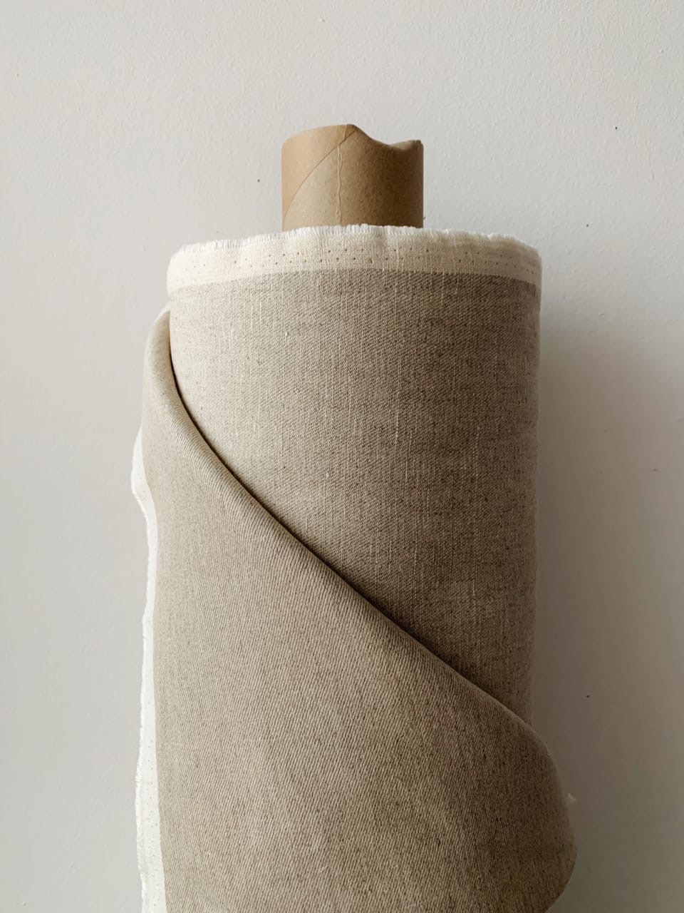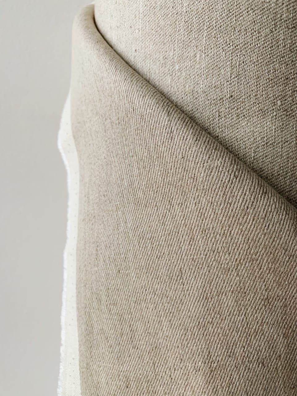 7072. Ткань лён очень плотный умягченный "натуральный" костюмный (саржевое плетение)