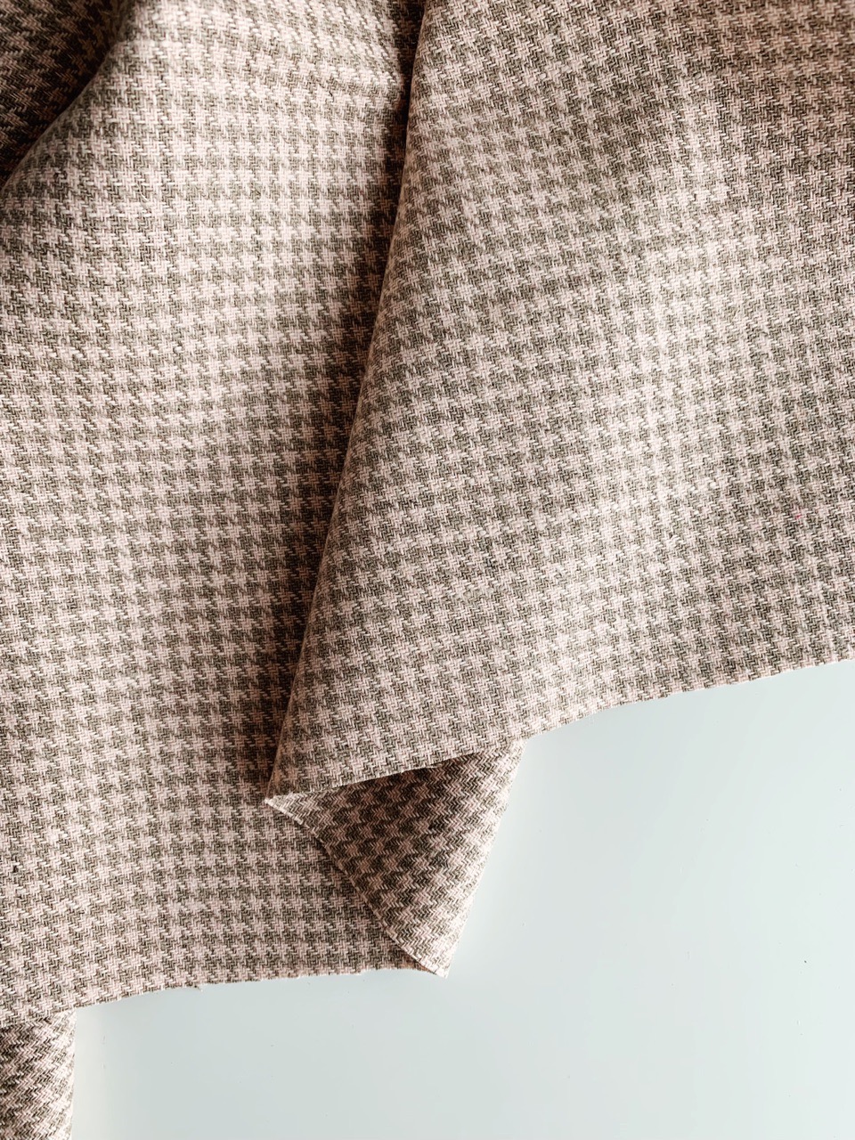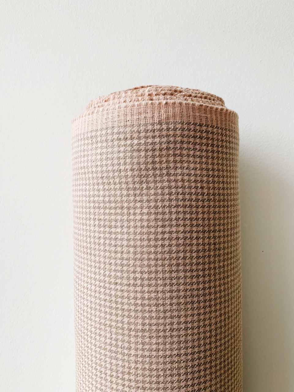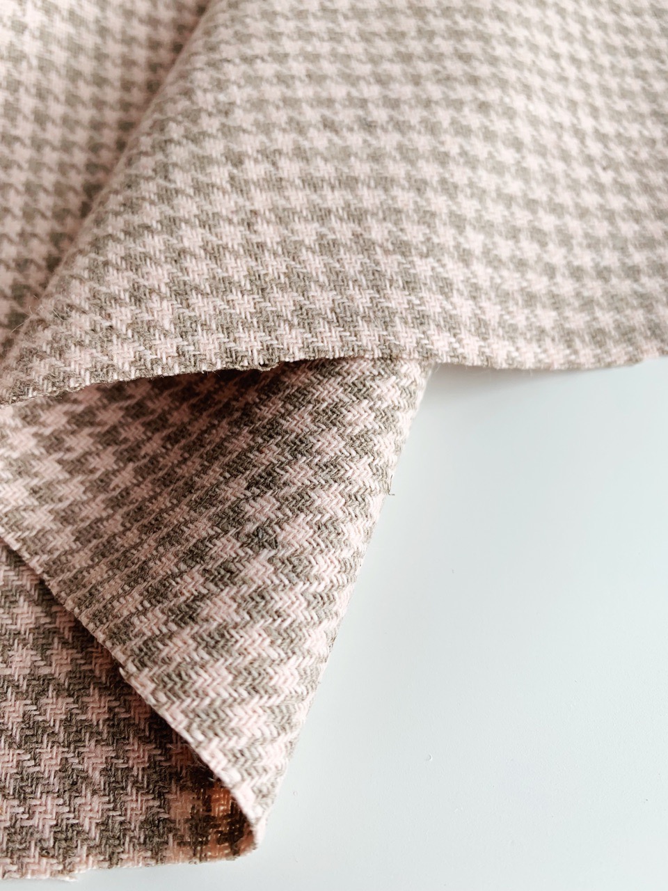 5807. Ткань умягчённый лён "гусиная лапка розово-бежевая" костюмный