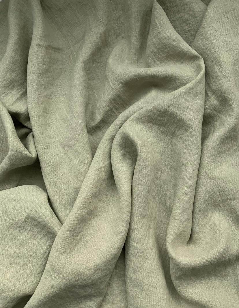 Ткань для шитья лён с эфектом мятости "зелёный чай” арт. 1416КР