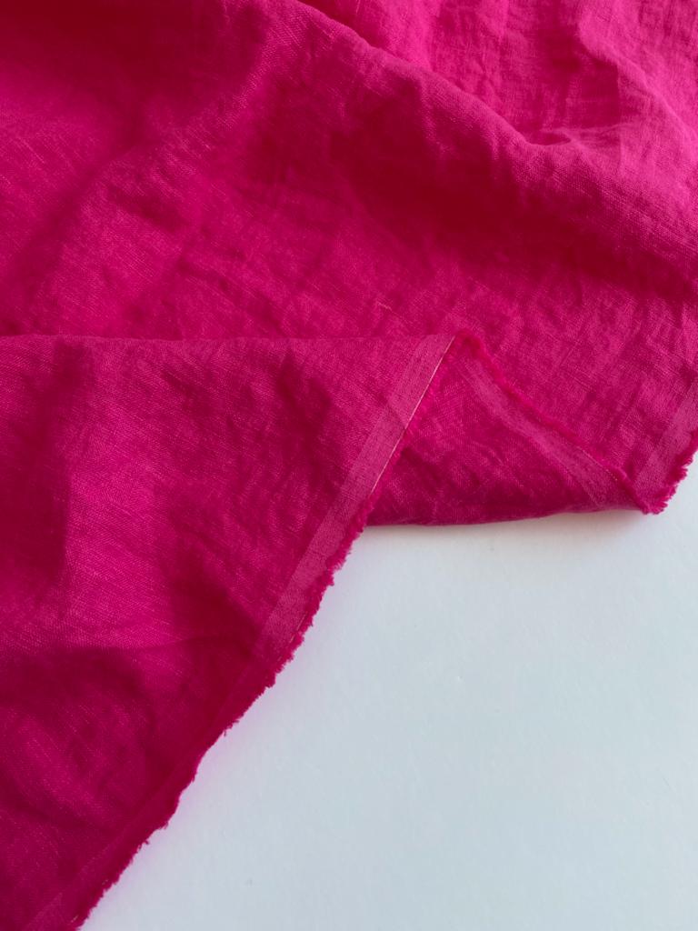 Льняная ткань умягченная костюмная с эффектом мятости "фуксия" 175 гр, арт. 80КР