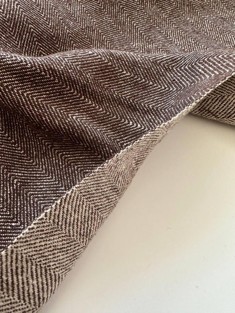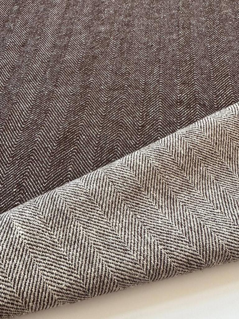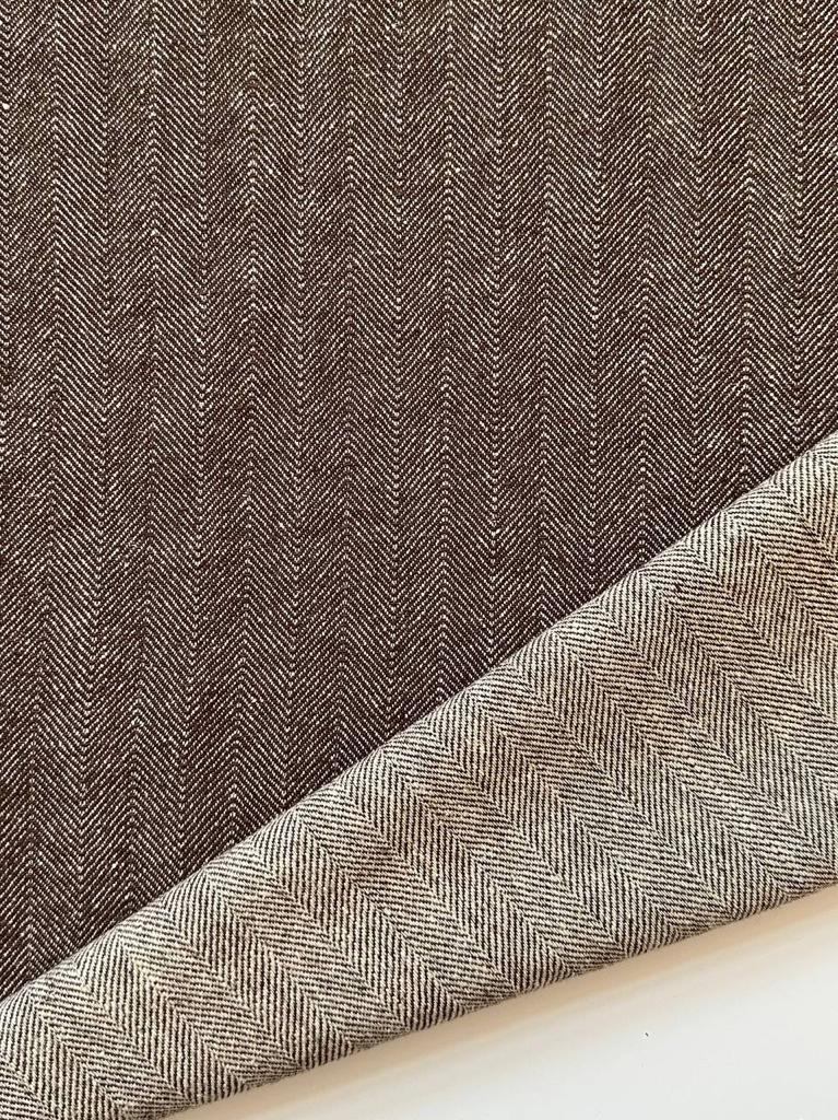 Ткань лён плотный "ёлочка шоколад" с эффектом мятости арт.5849