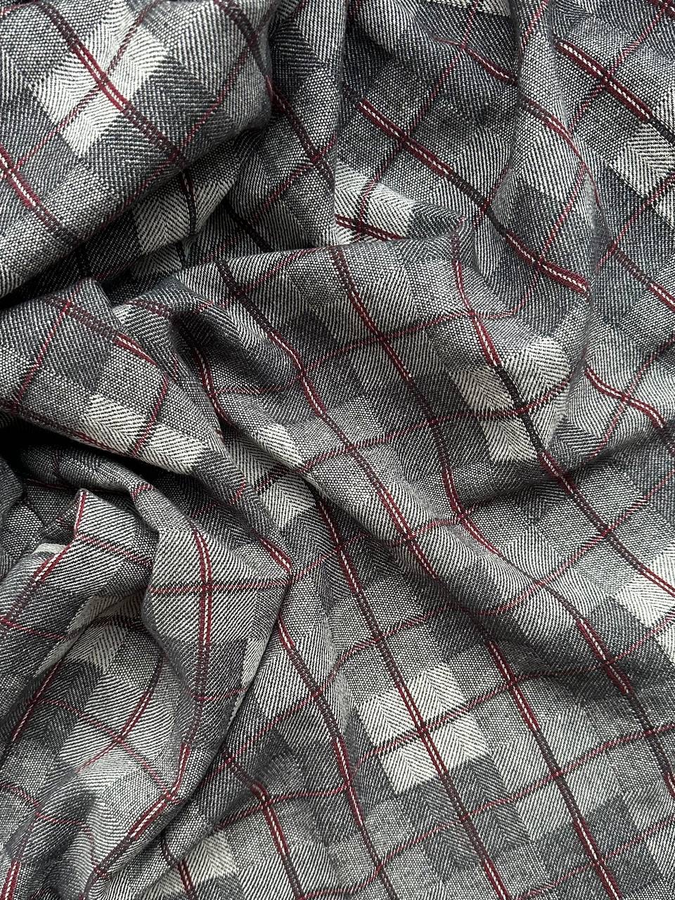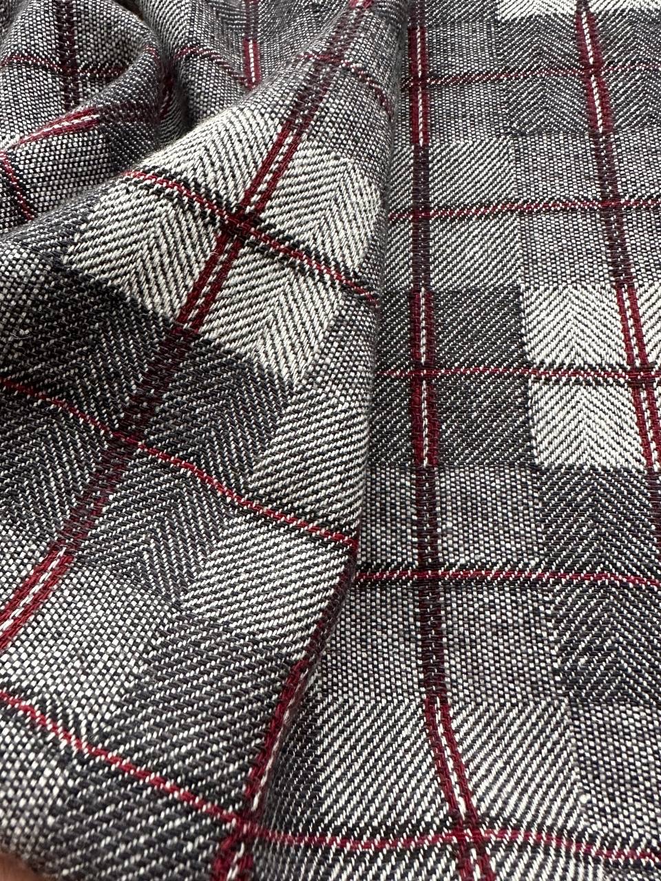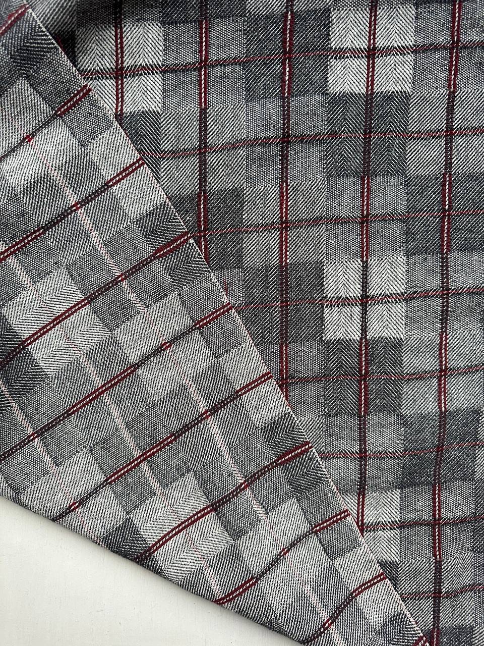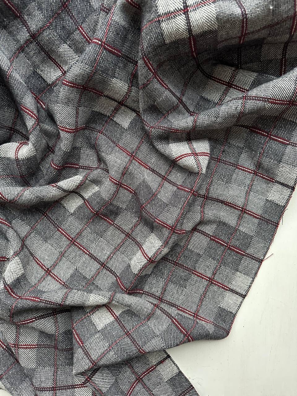 Ткань лён плотный "Серая клетка" с эффектом мятости арт.5855