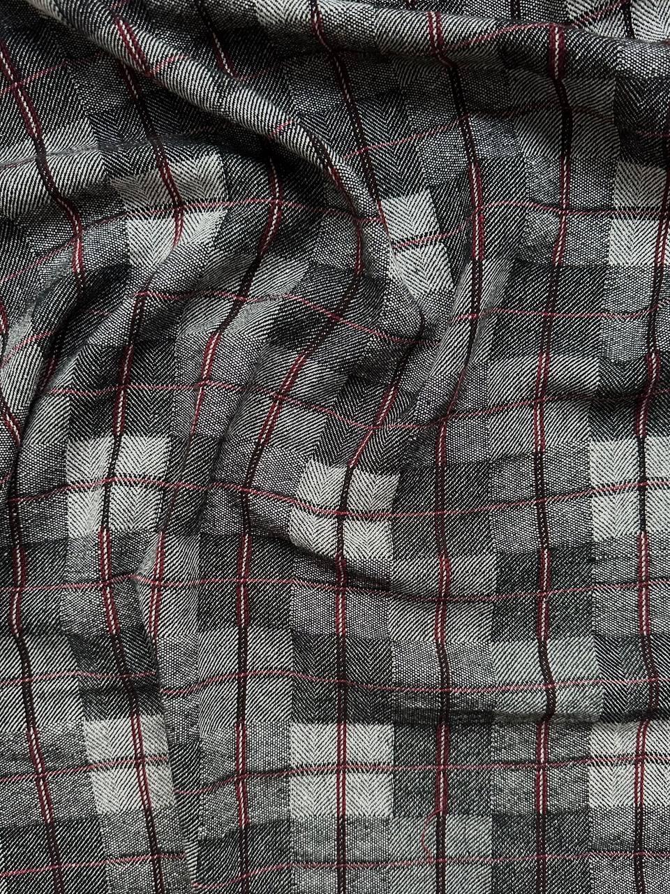 Ткань лён плотный "Черная клетка" с эффектом мятости арт.5851