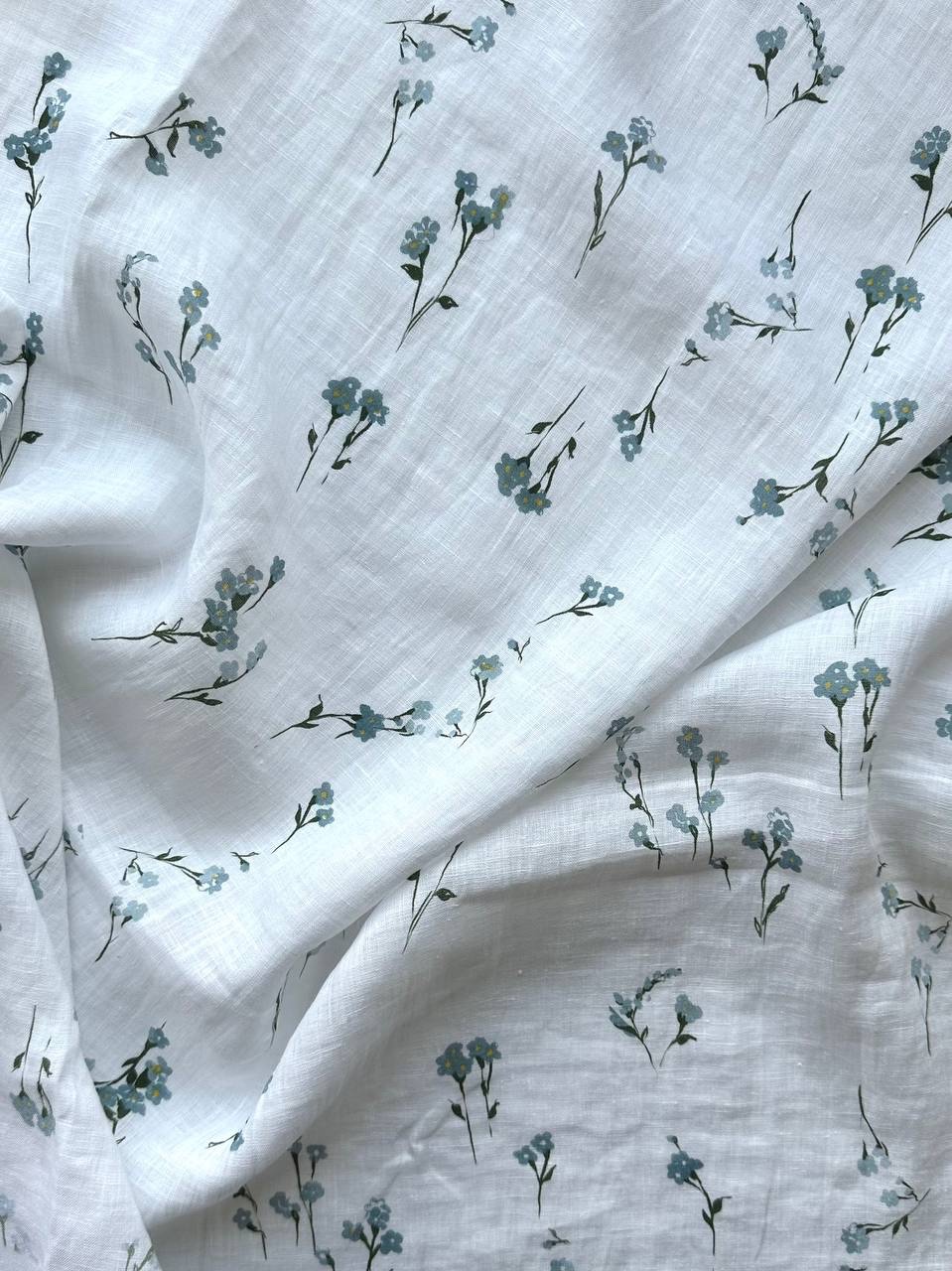 Ткань лён сорочечный с эффектом мятости "Незабудки” арт.7749