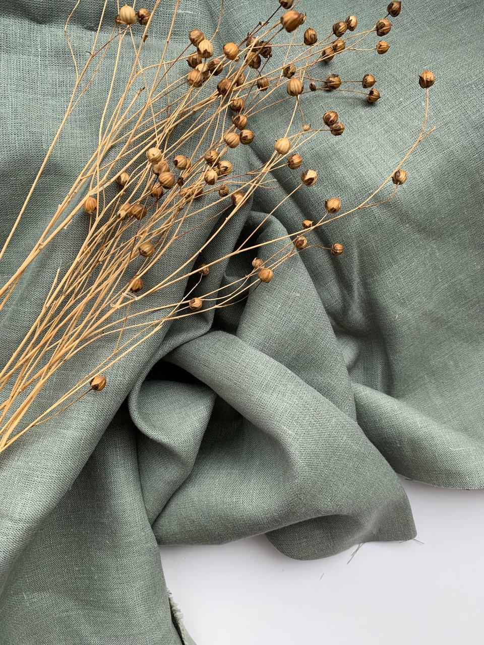 Ткань лён с эфектом мятости (крэш) "полынь" арт. 138КР