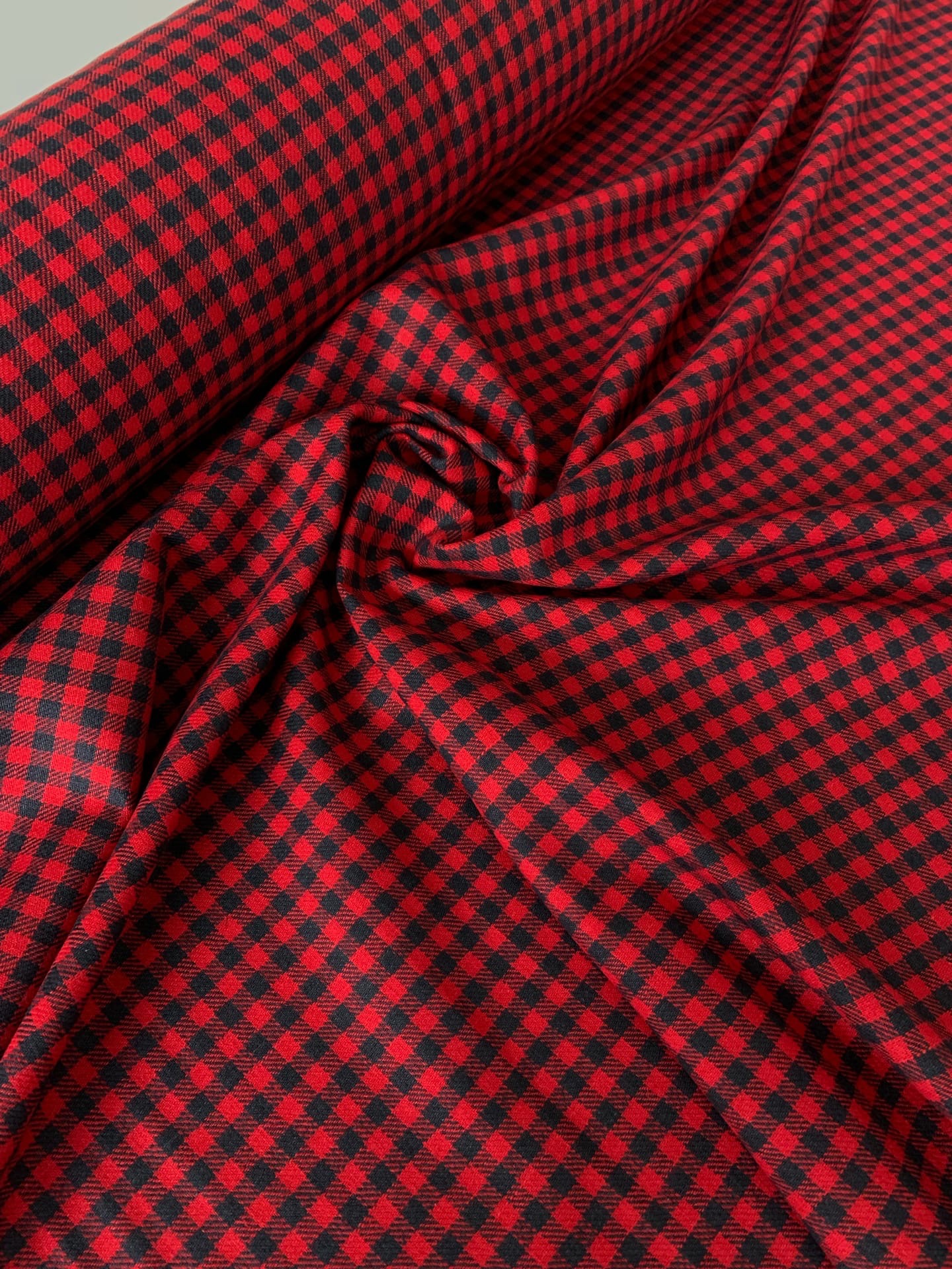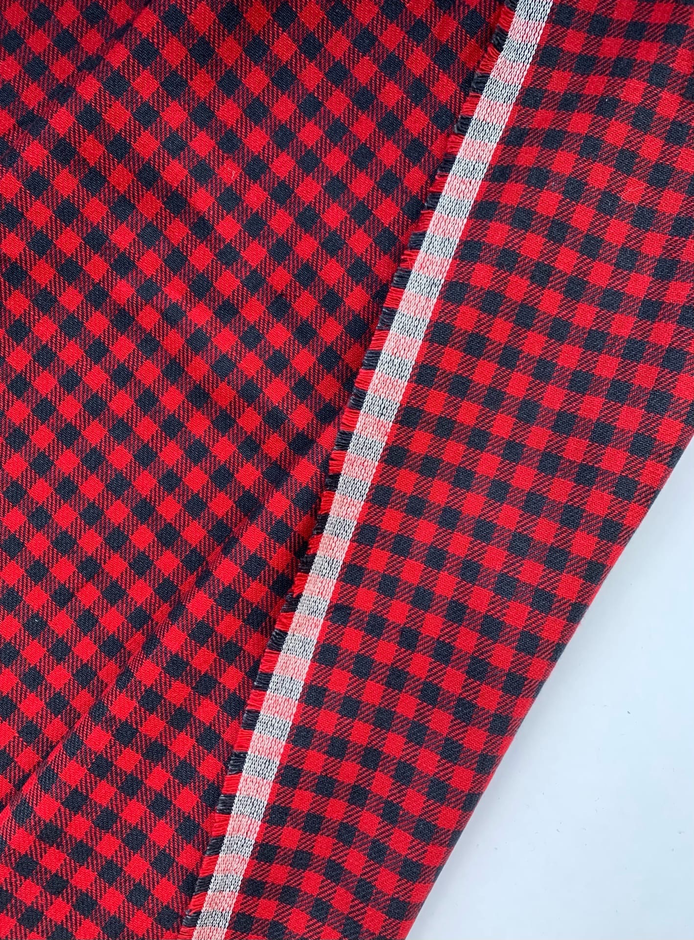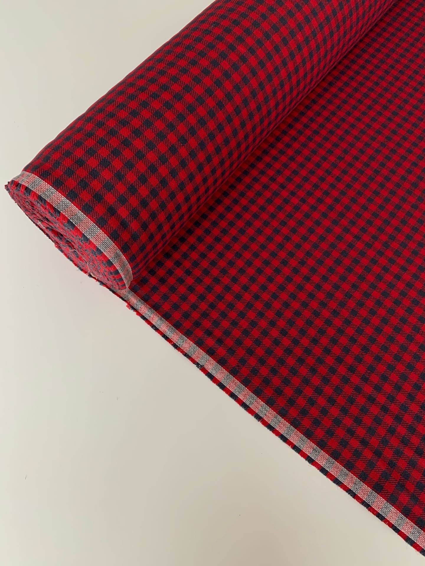 Ткань лён умягченный плотный "клетка виши красная" костюмный арт. 6281
