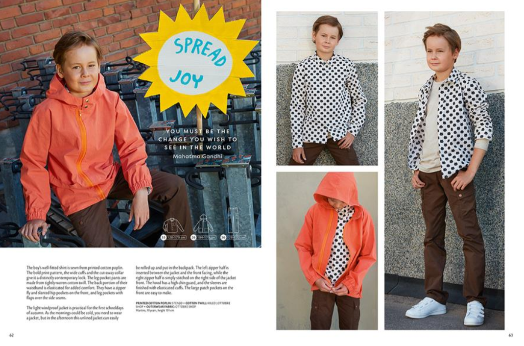 Современный стиль с ноткой романтики – чудесная осенняя коллекция для школы и прогулок. Пальто из вареной шерсти, туника с карманом-кенгуру, эластичные джинсы, блуза с оборками, толстовка с капюшоном, брюки на бретелях, кардиган, поплиновая блуза и две милых юбки. Вельветовый костюм, состоящий из куртки и брюк, рубашка-поло на молнии, куртка, футболка с длинными рукавами и трикотажные брюки.