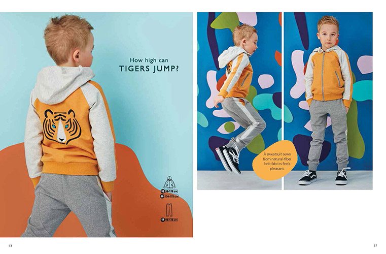 Наши энергичные малыши-модели учатся одеваться самостоятельно. Трикотажные брюки с забавным акцентом, брюки из полосатого трикотажа, две футболки, свитер для юного рыбака, безрукавка с капюшоном, трикотажная туника и актуальный комбинезон из велюрового трикотажа. Осенняя коллекция для школы и досуга. Платья из мериносовой шерсти и трикотажа, спортивная майка, клетчатые трикотажные брюки и трикотажный костюм с розами. Функциональные брюки для походов, разноцветная футболка-реглан, трикотажная толстовка с капюшоном, безрукавка.