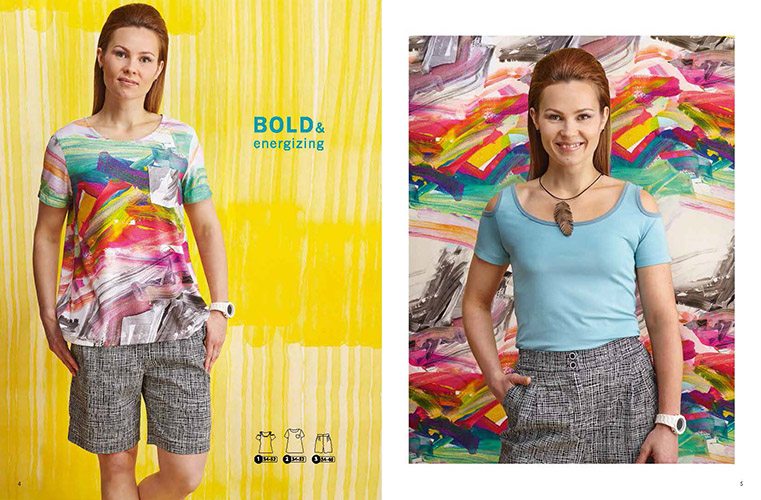 Содержание: Мы погрузились в глубины морей и чащу джунглей и нарисовали нашу весенне-летнюю коллекцию смелыми яркими мазками. Чудесные топы и футболки, бермуды, рубашка из вискозы, юбка миди, платье с запахом и еще три восхитительных платья и комбинезон. Наши нарядные модели для лета исполнены из тканей с самыми разными рисунками – размытыми, пятнистыми, геометрическими. Льняные платья и брюки, платье из двустороннего трикотажа, блуза из вискозы, сатиновое платье чудесного силуэта, грандиозное черное платье-макси, и два элегантных комплекта из юбки и топа с баской.