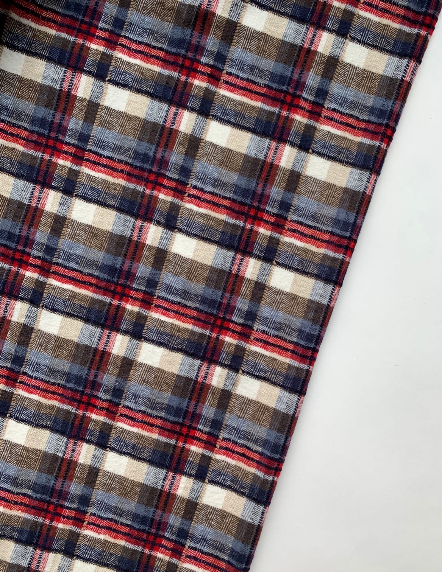 Ткань для шитья. Фланель хлопковая "красно-сине-бежевая" арт. 1882